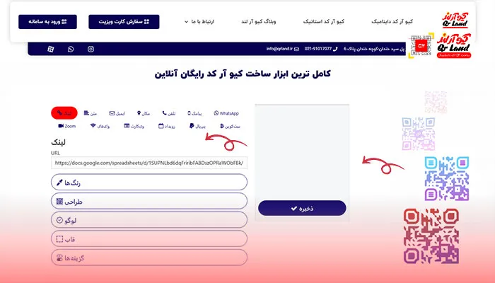 3. استفاده از ابزارحرفهای ساخت کیو آر داینامیک کیو آر لند