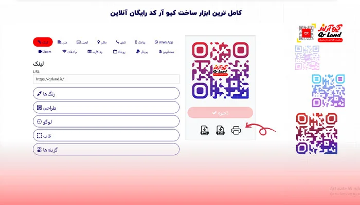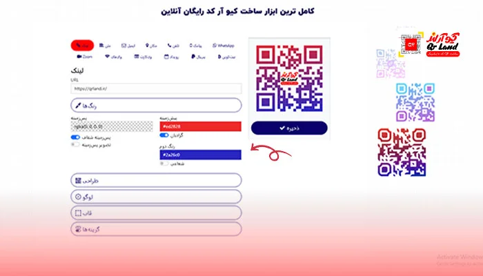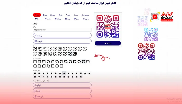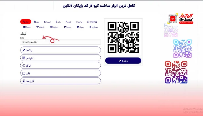 • سپس، آموزش ساخت آن در سایت کیو آر لند.