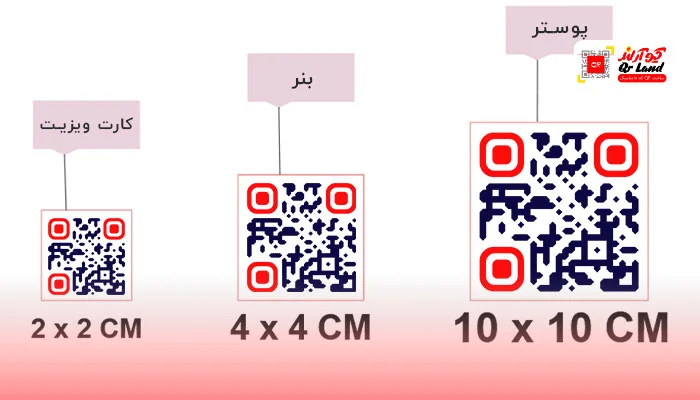 اندازه برچسب باید متناسب با فاصله مورد انتظار کاربر برای اسکن باشد. برای مثال، اگر برچسب روی یک بسته کوچک است، اندازه باید حداقل 2 تا سانتیمتر باشد تا دوربین موبایل بتواند بهراحتی آن را بخواند.