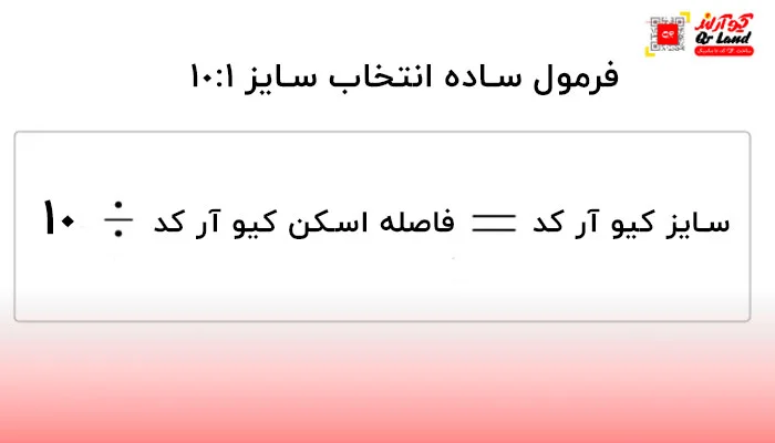 قانون ساده بر پایه‌ی نسبت بین فاصله‌ی اسکن‌کننده و اندازه‌ QR کد طراحی شده است. این قانون که با نام قانون 10:1 شناخته می‌شود، به‌صورت زیر عمل می‌کند: