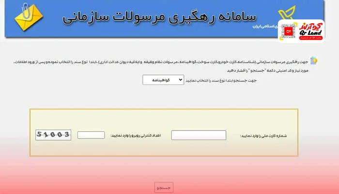 در صورتی که قصد رهگیری مرسولات سازمانی مثل کارت پایان خدمت، گواهینامه را دارید کافیست :